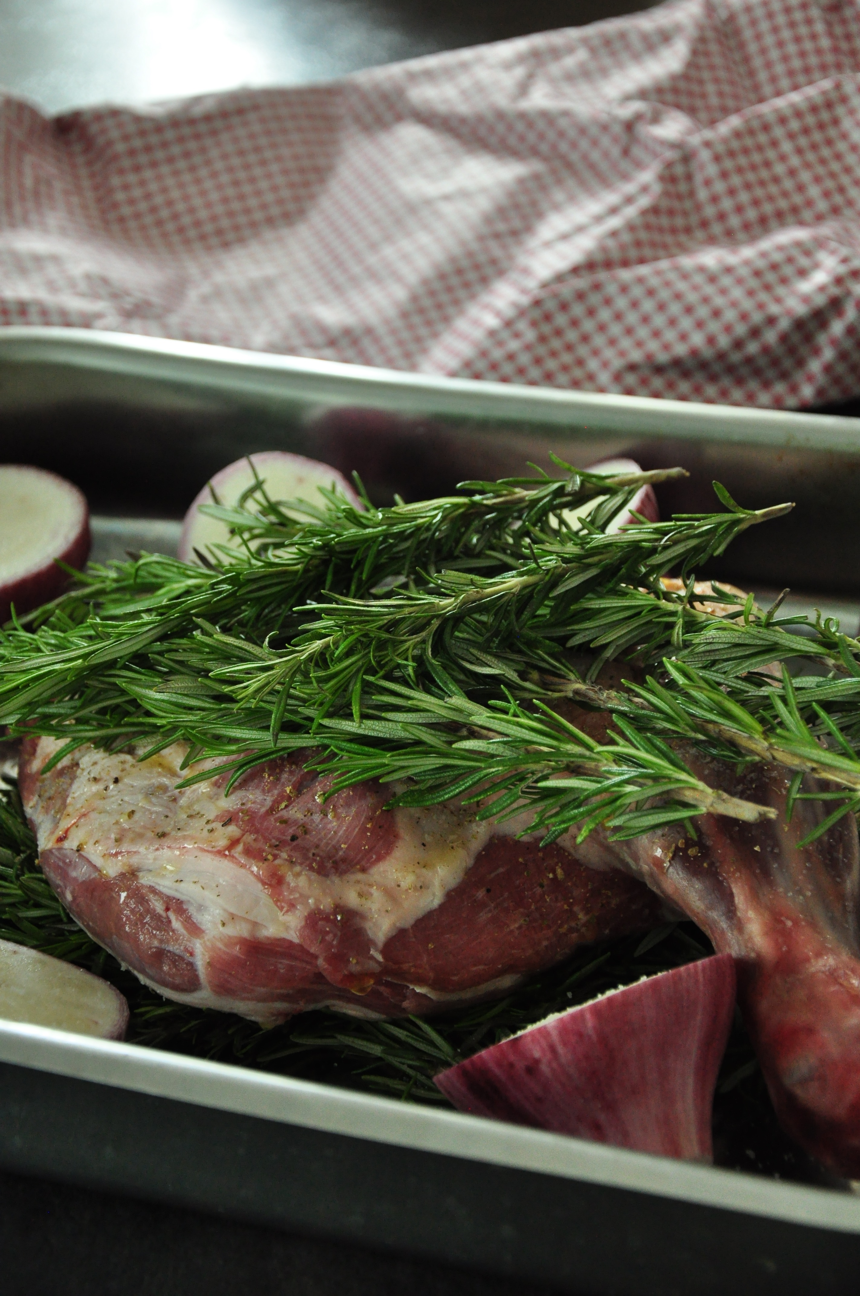 Enfin, le moment de grâce est arrivé malgré tout et très symboliquement au dernier repas que nous avons partagé ensemble le dimanche soir. J’avais longuement hésité et non parce que je doutais du résultat (j’aurais dû peut-être après tout) mais parce qu’il fallait prévoir du temps pour l’obtenir. Il s’agissait d’une recette tirée du très beau livre de Mimi Thorisson, testée pour la première fois lors du repas de Pâques et approuvée unanimement. Et puis, samedi matin au marché, juste avant de terminer les courses mon regard vagabondant s’est arrêté de lui-même à ces très beaux morceaux d’agneau dans la vitrine du boucher, alors que mon esprit cherchait désespérément une idée de dîner pour cette fameuse dernière soirée. Après tout, pourquoi pas, je programmerai le four, ça ira, pas besoin de toujours tout surveiller, n’est-ce pas?