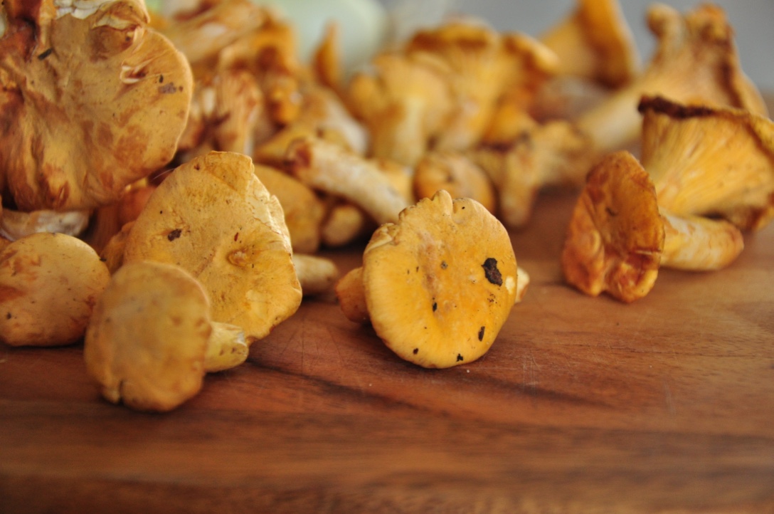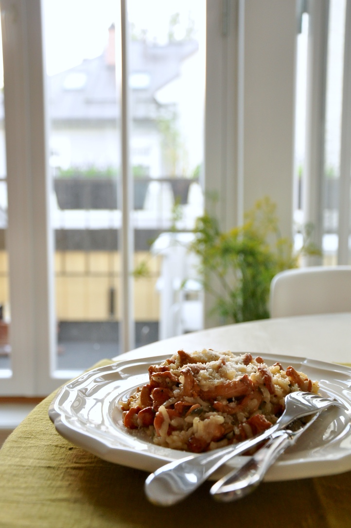 Car les girolles, on aime ça. On aime dénicher ses petites merveilles sous la forêt de pins, dans la mousse souvent. Quand il y en a une, il y en a d’autres, toujours. On aime leur couleur, leur forme facile à reconnaître. Et on aime les cuisiner. Omelettes, en accompagnement à un plat de viande, en risotto. Surtout en risotto. C’est un plat qui demande un peu de soins et de présence mais il en vaut tellement le coup.