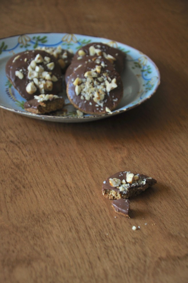 Cet après-midi j’ai enfourné pour la deuxième fois déjà des petits gâteaux au chocolat trouvés ici chez Local is Lovely. Cette fois-ci j’ai décidé de les parsemer d’éclats de noisettes torréfiés et de fleur de sel et c’était très bien comme ça. Si l’envie vous prend, remplacez les noisettes par des noix de pécan, ajouter des fruits secs, des pétales de rose, du zeste d’orange… ou rien du tout. Vous verrez, j’ai effectué quelques changements mineurs mais ceux-ci ne sont vraiment pas nécessaires.