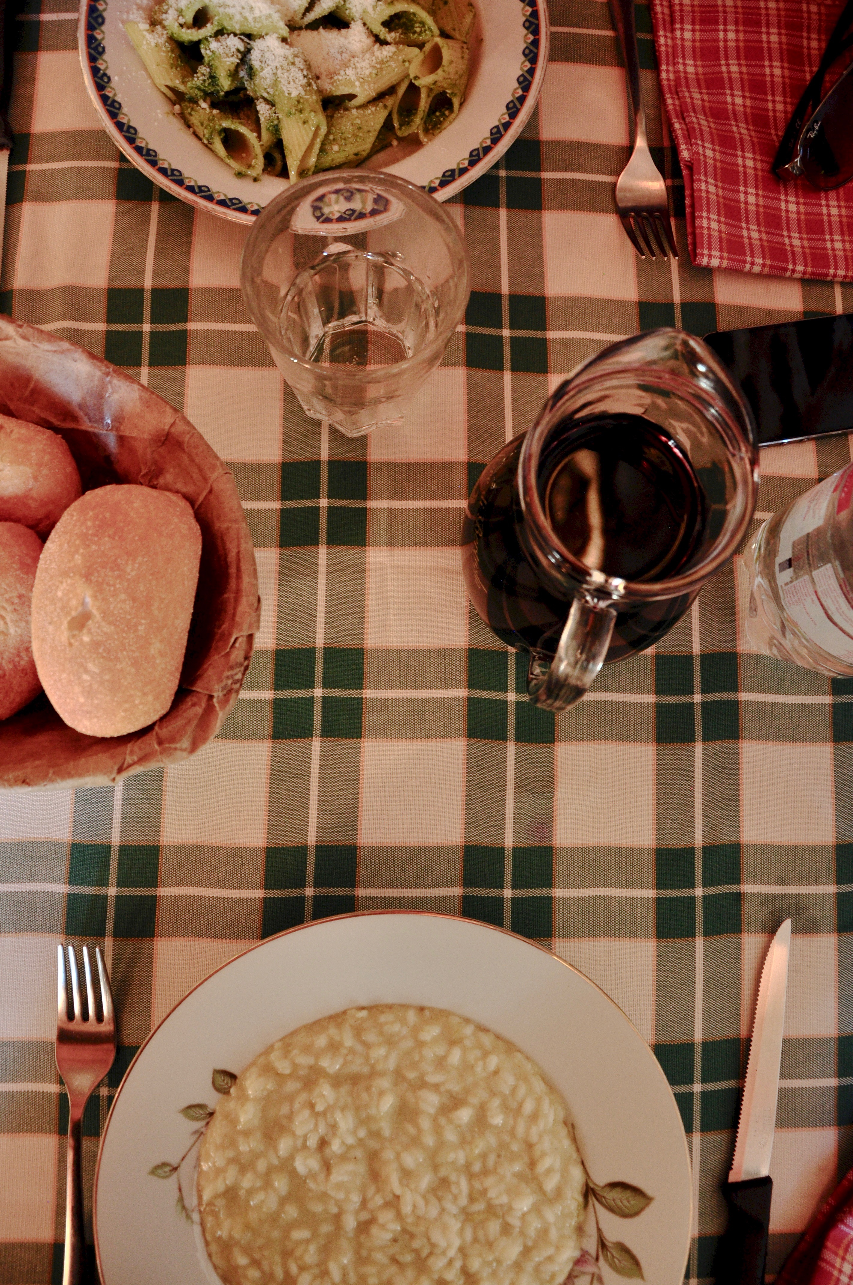 Il y a eu du pesto maison (la « recette » plus bas puisque c’est le seul des plats à avoir été immortalisé par l’appareil photographique), des omelettes et… un risotto. Bien sûr. Et pour mettre un point décisif au misérable triptyque hivernal composé de patates-navets-carottes, la rhubarbe est arrivée dans la foulée. Ma tarte n’est pas vraiment traditionnelle et s’il fallait lui trouver un défaut, je dirais que la génoise était trop dure si ça a de sens mais mais mais, elle était très bonne, surtout saupoudrée de l’indispensable sucre glace.