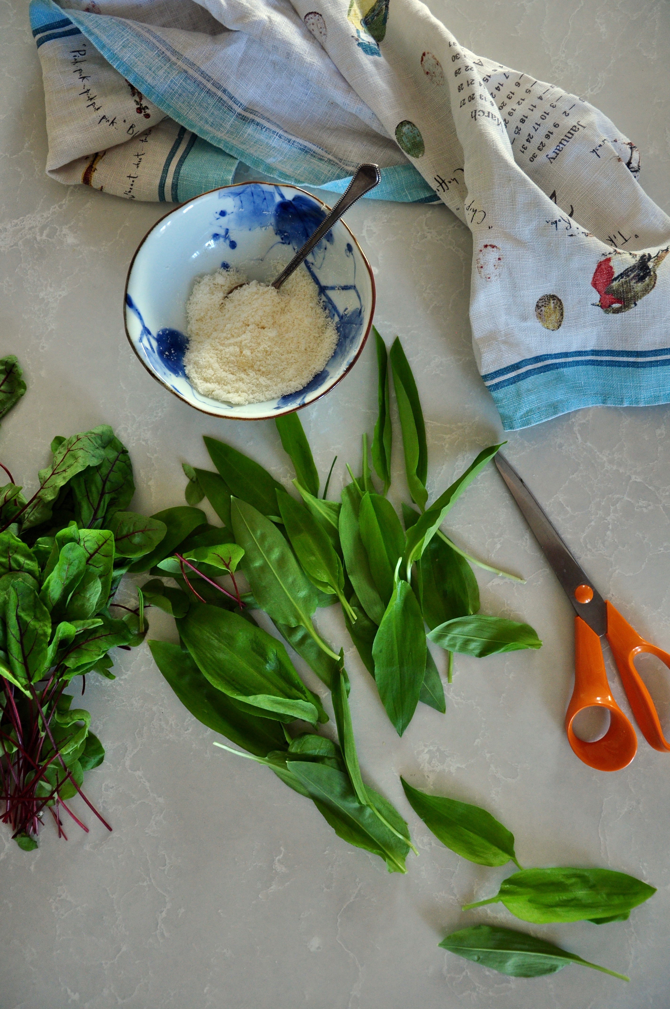 Des herbes en quantité (basilic normalement, ici de l’ail des ours, de la roquette, des épinards, de l’oseille…)