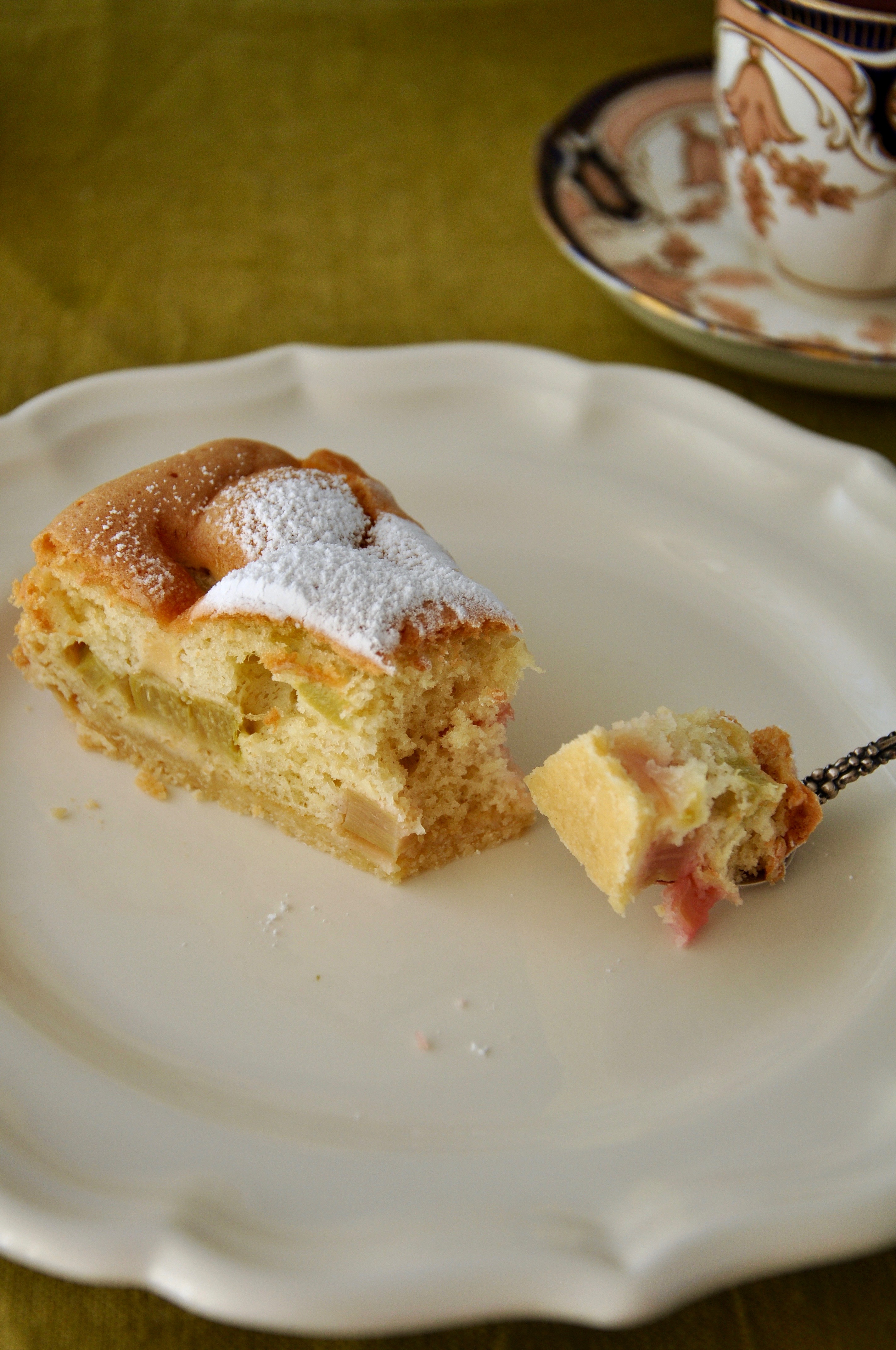 Nettoyer les tiges de rhubarbe pelez-les et découpez les en tranches de l’épaisseur d’un cm maximum. Mélangez-les avec le sucre (et la cannelle si vous aimez) et réservez. Vous pouvez également mettre la rhubarbe à égoutter une petite heure avant de préparer le gâteau si vous avez peur qu’elle contienne trop d’eau.